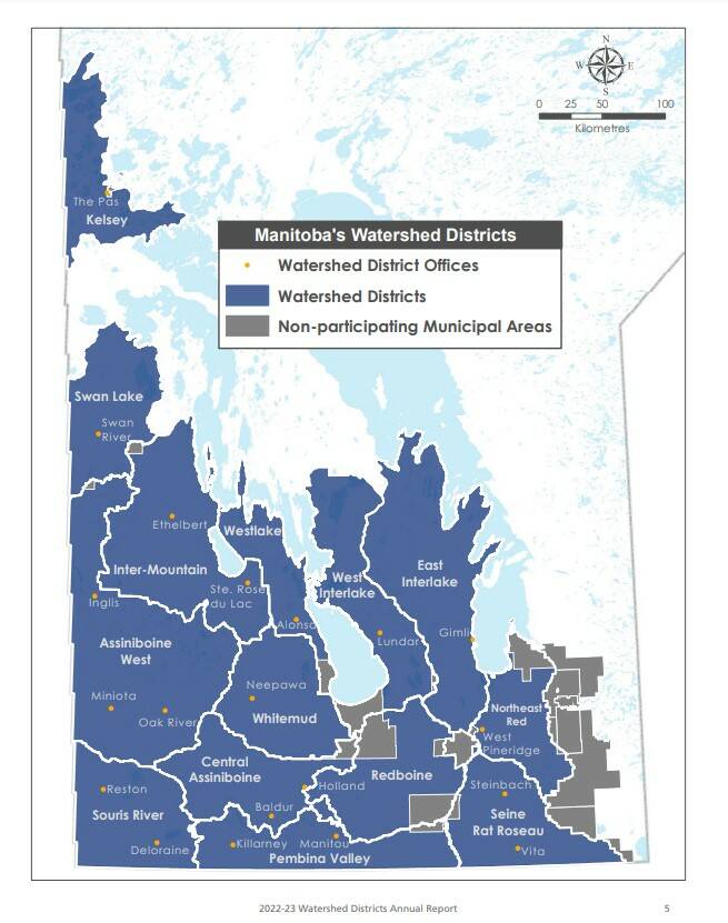 A map from the provincial government shows the area covered by watershed districts in Manitoba. (Province of Manitoba)
