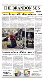 A defence lawyer brought a bullet-ridden door into Brandon’s Court of King’s Bench on Wednesday as evidence during a trial for a man accused of firing a gun into the bathroom door his ex-girlfriend was hiding behind. READ MORE