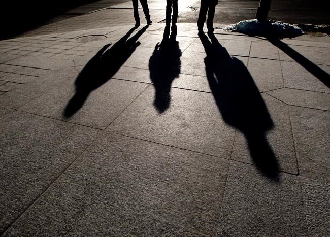 People cast their shadows on the sidewalks as they make their way home after work in downtown Toronto on Tuesday, Feb. 24, 2009. THE CANADIAN PRESS/Nathan Denette
