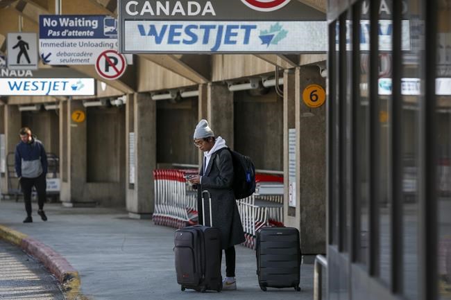 A passsenger waits at the WestJet end of the Calgary airport after the company laid off nearly 7000 employees, in Calgary, Alta., Wednesday, March 25, 2020. WestJet Airlines Ltd. is extending its suspension of thousands of flights by another four weeks until July 4 due to the COVID-19 pandemic. THE CANADIAN PRESS/Jeff McIntosh