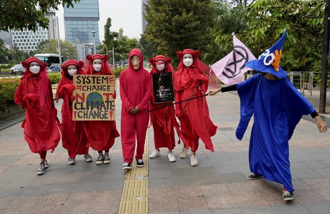 In Jakarta, activists dressed in red robes and held placards demanding “system change not climate change.”