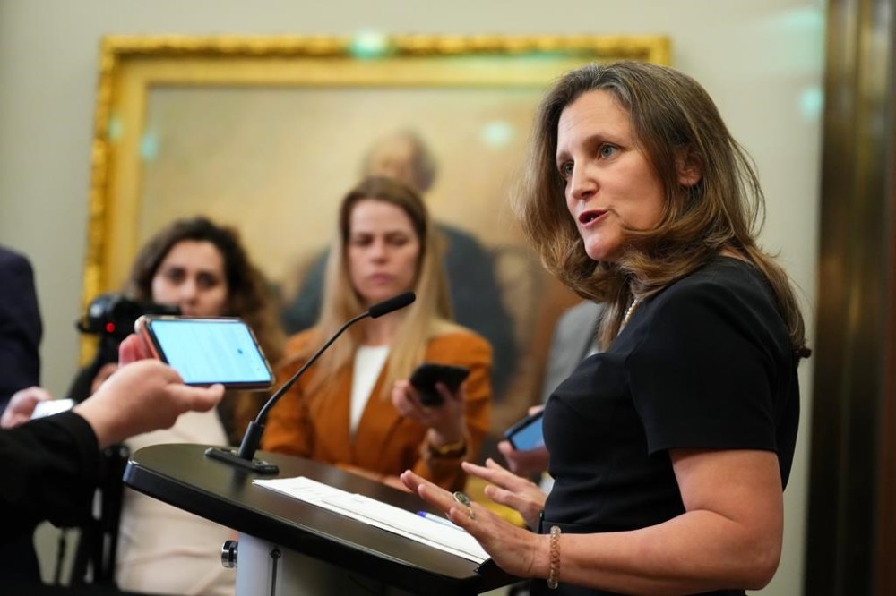 OTTAWA – Finance Minister Chrystia Freeland announced Wednesday that Canada will halt all government-led activity at the Asian Infrastructure Investment Bank after a Canadian citizen tendered his resignation from the financial institution.