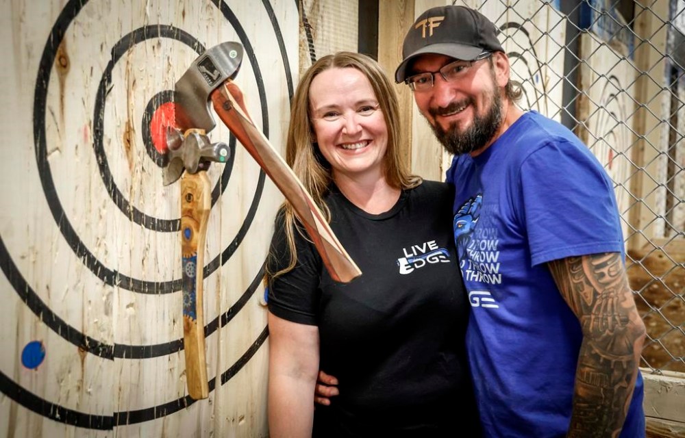 Live Edge Axe Throwing, which the couple opened in November, offers instruction to beginners as well as a spot for more advanced throwers whocompete in weekly leagues with the goal of making it to the worlds.