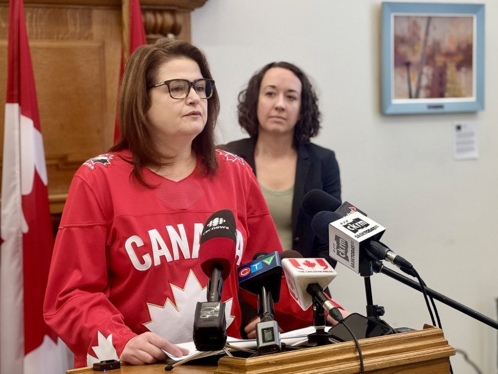 NDP Leader Carla Beck says her party will introduce an emergency motion this week calling legislators to condemn Trump for proposing to annex Canada and imposing tariffs on Canadian goods.