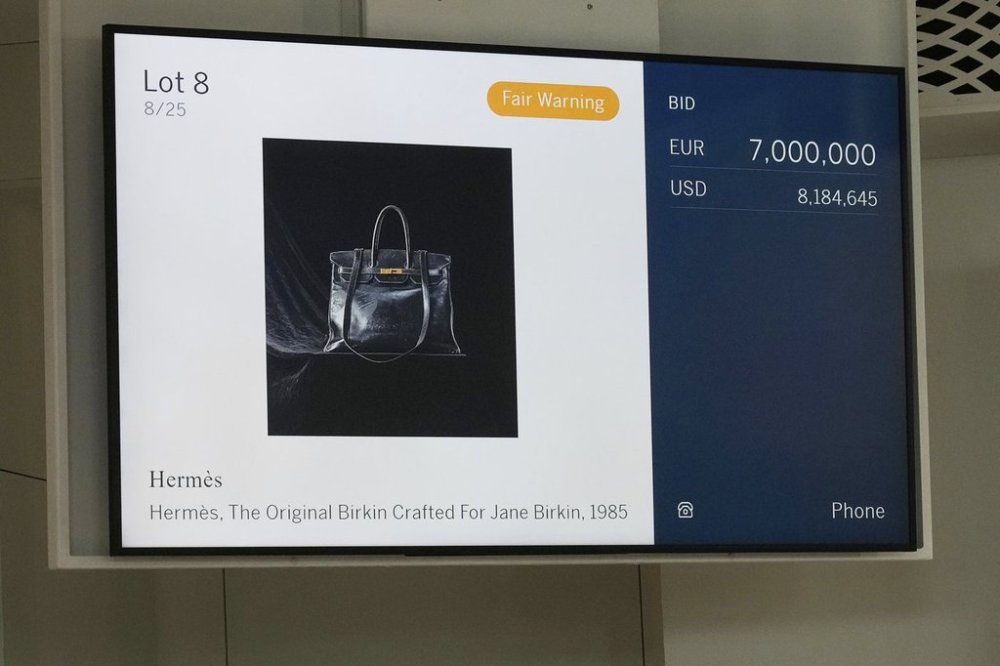 Paris fashion house Hermès exclusively commissioned the bag for the London-born Birkin in 1984 — branding it with her initials J.B. on the front flap, below the lock — and delivered the finished one-of-a-kind bag to her the following year, Sotheby’s said. The subsequent commercialized version of Birkin’s bag went on to become one of the world’s most exclusive luxury items, extravagantly priced and with a yearslong waiting list.