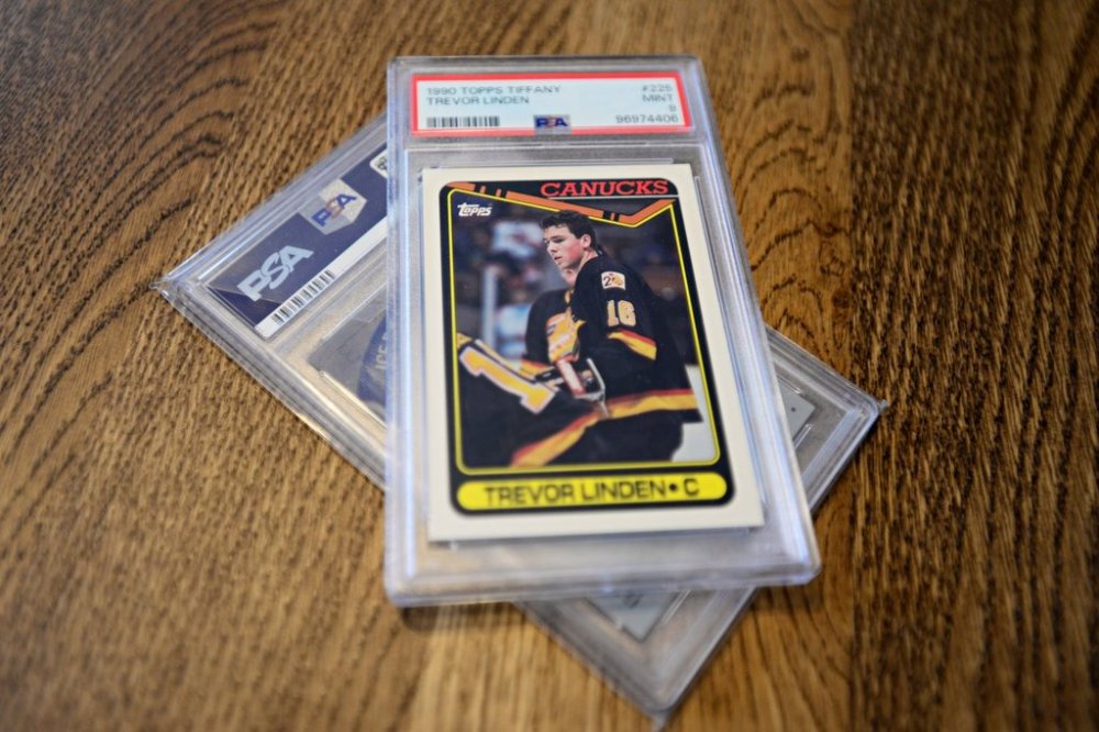 A 1990 Topps Trevor Linden hockey card graded by PSA is shown in Toronto on Friday, April 25, 2025. THE CANADIAN PRESS/Joe O'Connal