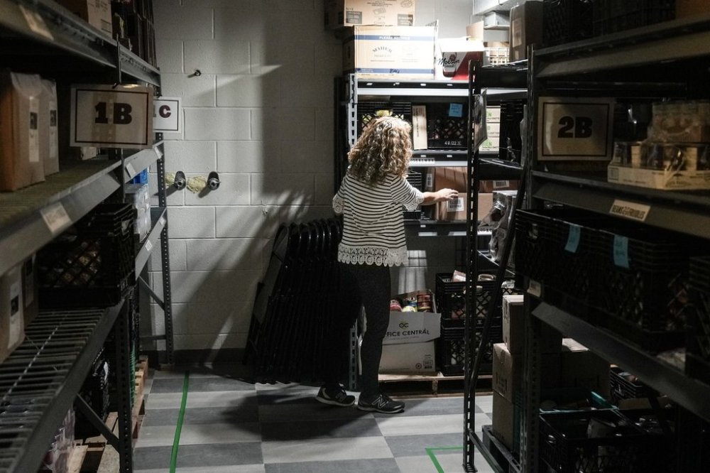 A volunteer works in the storeroom of St. Philip Neri’s Table Food Bank at St Philip Neri Church in Toronto, Friday, Oct. 25, 2024. THE CANADIAN PRESS/Chris Young