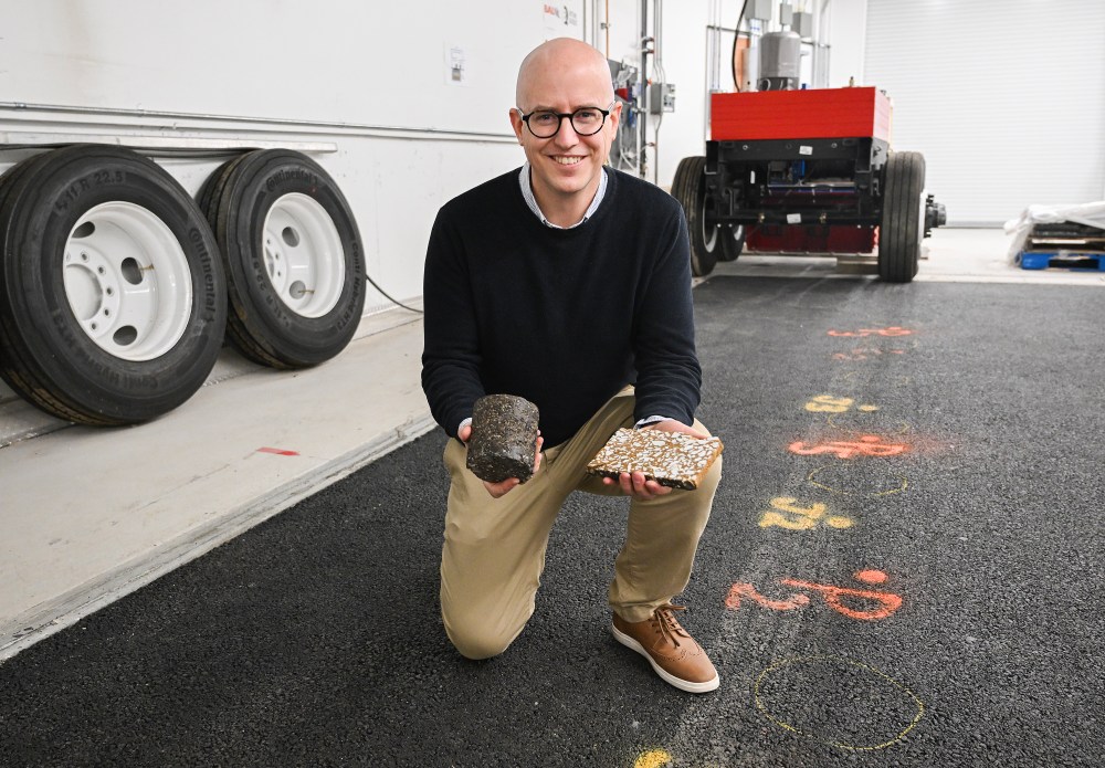 Using an accelerated loading track — a 12-metre-long, three-metre-wide, and 2.8-metre-deep road surface — his team simulates years of traffic in only months. “We’re trying to optimize the recipe. We need mixes that last as long as possible,” he said.
