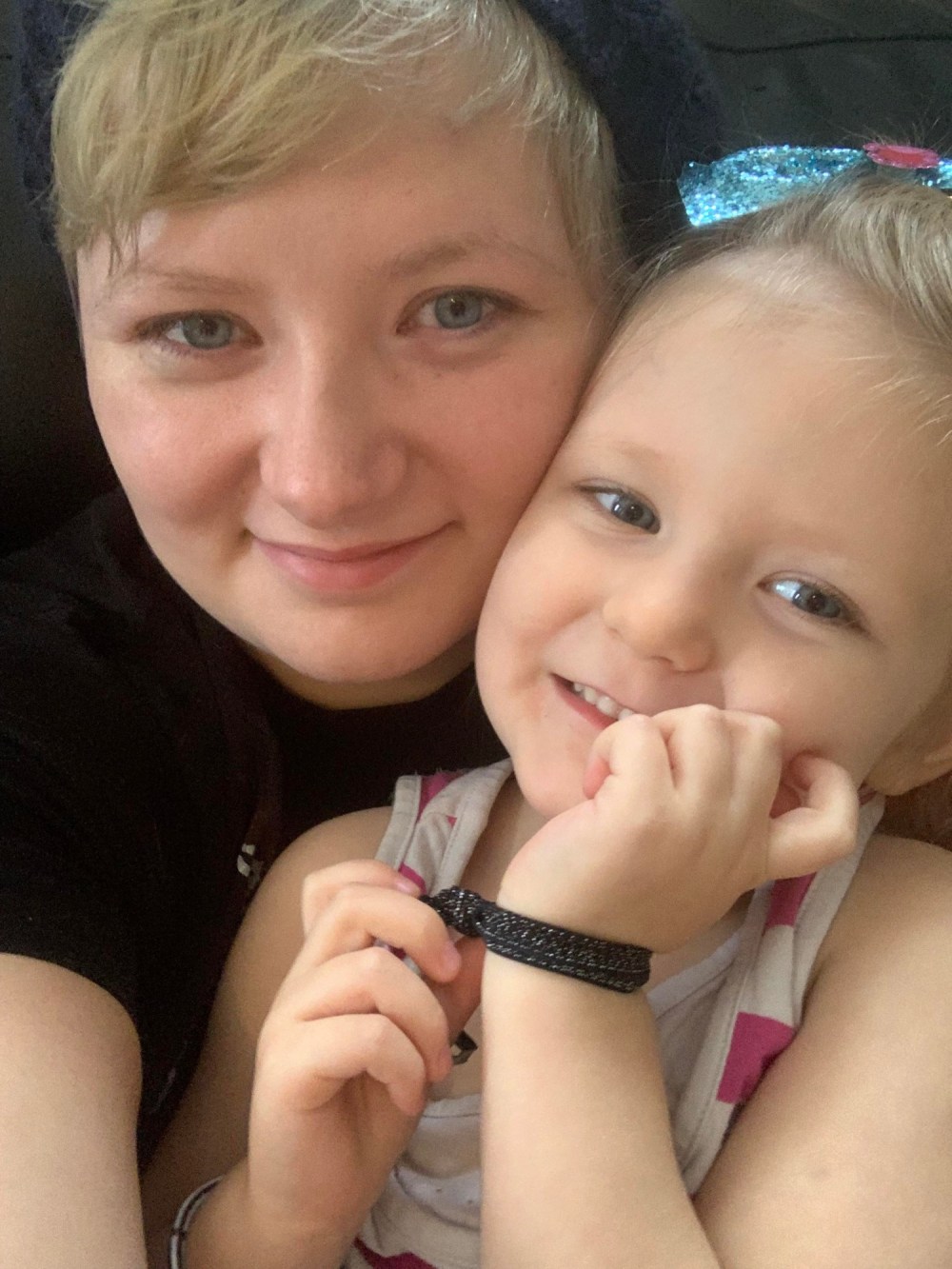 Jenna Bardarson and her three-year-old daughter Dali were given COVID-19 vaccines instead of the flu shots they were scheduled to get at the Keystone Centre last week. (Submitted)