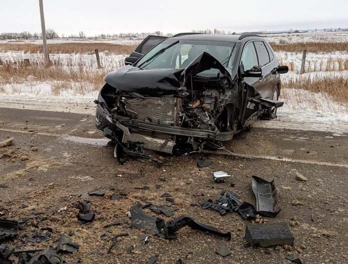 Roughly one kilometre west of the Provincial Trunk Highway 110 intersection, a vehicle travelling in the opposite direction at around 90 km/h swerved into the oncoming lane and hit Karmelle’s 2015 Ford Edge head-on.