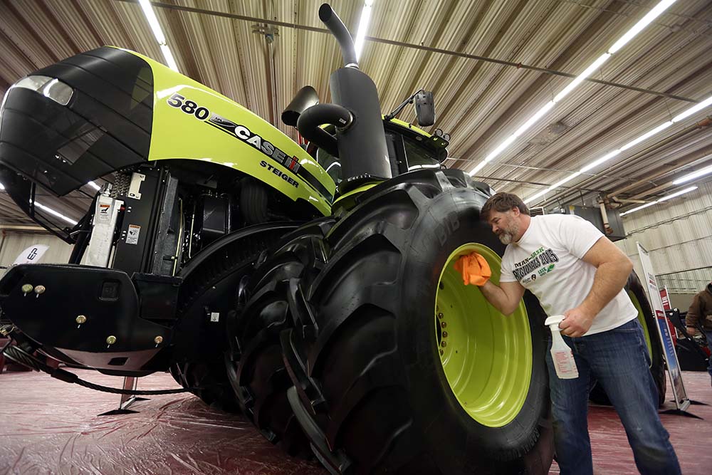 File Darryl Priel from Saskatoon polishes a Case IH four-wheel-drive tractor in the Canada Room of the Keystone Centre at a previous Manitoba Ag Days. Organizers of the event are hoping public health orders will change in their favour so they can host Ag Days in March.