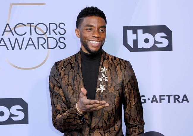 FILE - In this Jan. 27, 2019 file photo, Chadwick Boseman arrives at the 25th annual Screen Actors Guild Awards at the Shrine Auditorium & Expo Hall in Los Angeles. Boseman, who played Black icons Jackie Robinson and James Brown before finding fame as the regal Black Panther in the Marvel cinematic universe, has died of cancer. His representative says Boseman died Friday, Aug. 28, 2020 in Los Angeles after a four-year battle with colon cancer. He was 43. (Photo by Willy Sanjuan/Invision/AP, File)