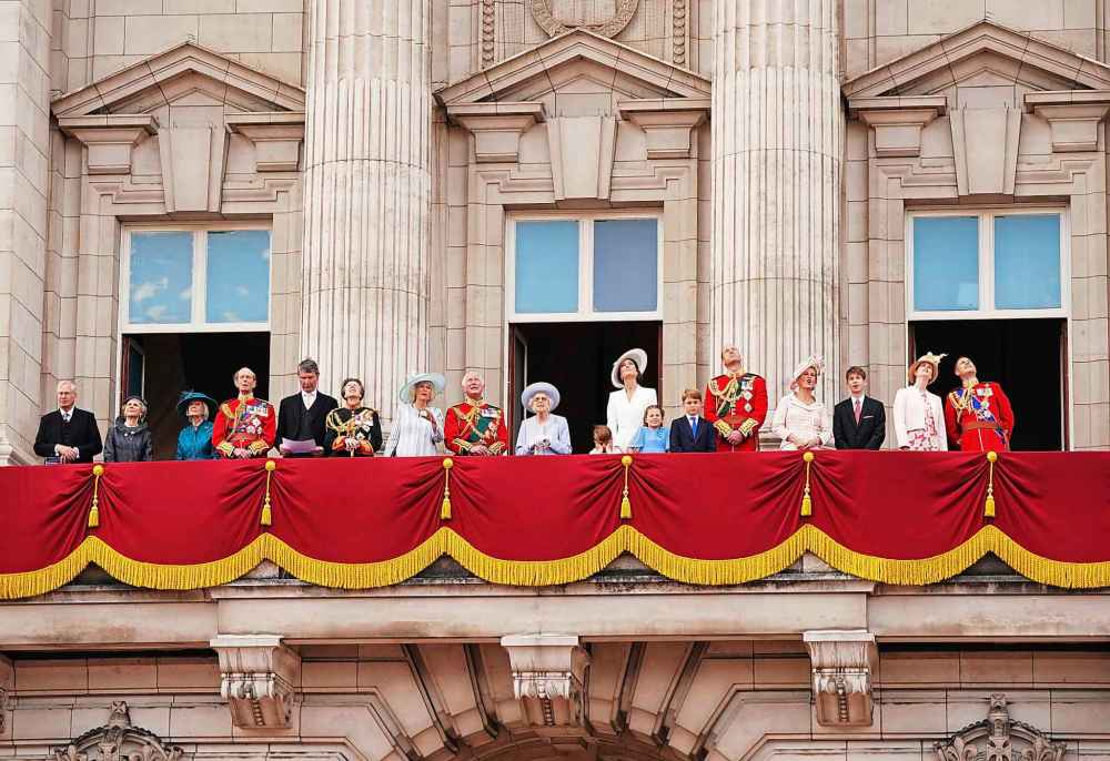The queen, wearing a dusky dove blue dress designed by Angela Kelly, was joined on the balcony by more than a dozen royals — though not Prince Harry and his wife Meghan, who gave up front-line royal duties two years ago. The couple traveled to London from their home in California with their two young children to take a low-key part in the celebrations, and watched Thursday’s Trooping the Color with other members of the family.