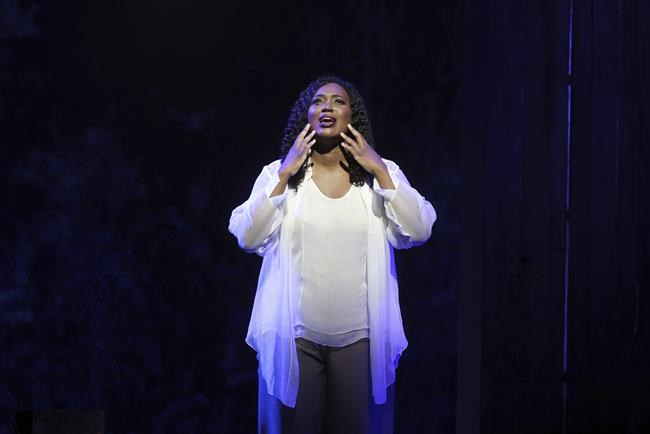 FILE - Angel Blue performs during a rehearsal of "Fire Shut Up in My Bones" at the Metropolitan Opera, on Sept. 24, 2021, in New York. Soprano Angel Blue says she won't perform in an opera in Italy this month because blackface was used in the staging of another work this summer. The U.S. singer posted a note on Instagram saying she will be bowing out of “La Traviata” at Verona's Arena this month because the theater recently mounted another Verdi opera, “Aida,” using blackface. (AP Photo/Jason DeCrow)