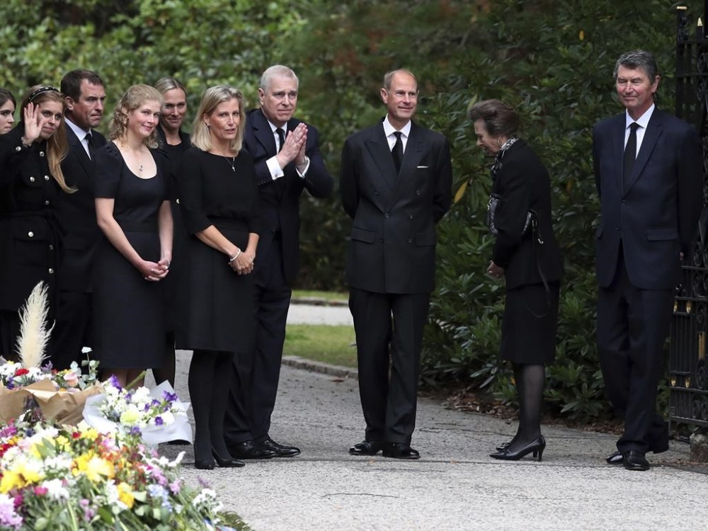 BALMORAL CASTLE, Scotland — Members of the royal family have stopped to take in a sea of floral tributes left by the public outside the gates of Balmoral Castle in Scotland after attending a prayer service nearby.