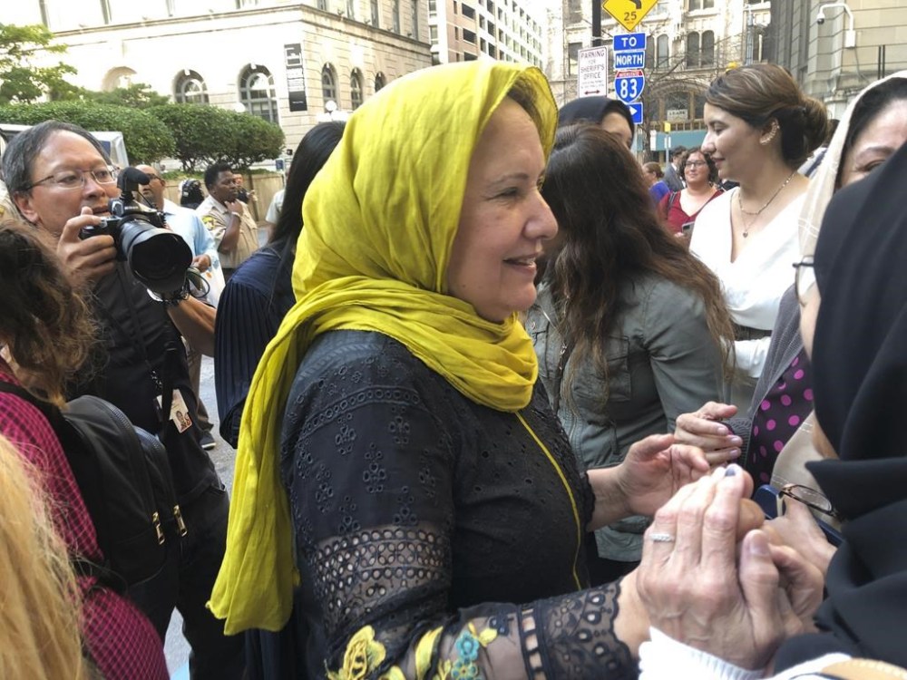 Shamim Syed, Adnan Syed's mother, celebrates with others outside the Cummings Courthouse, Monday, Sept. 19, 2022, in Baltimore. A judge has ordered the release of Adnan Syed after overturning his conviction for a 1999 murder that was chronicled in the hit podcast “Serial.” (AP Photo/Brian Witte)