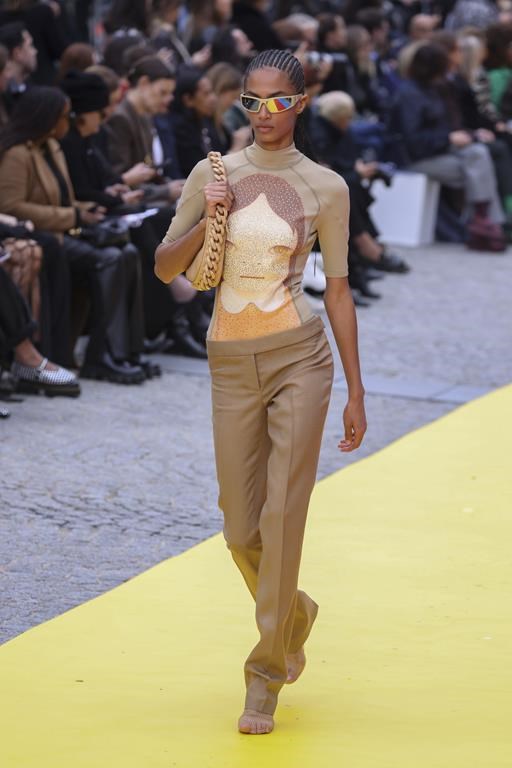 A model wears a creation for the Stella McCartney ready-to-wear Spring/Summer 2023 fashion collection presented Monday, Oct. 3, 2022 in Paris. (Photo by Vianney Le Caer/Invision/AP)