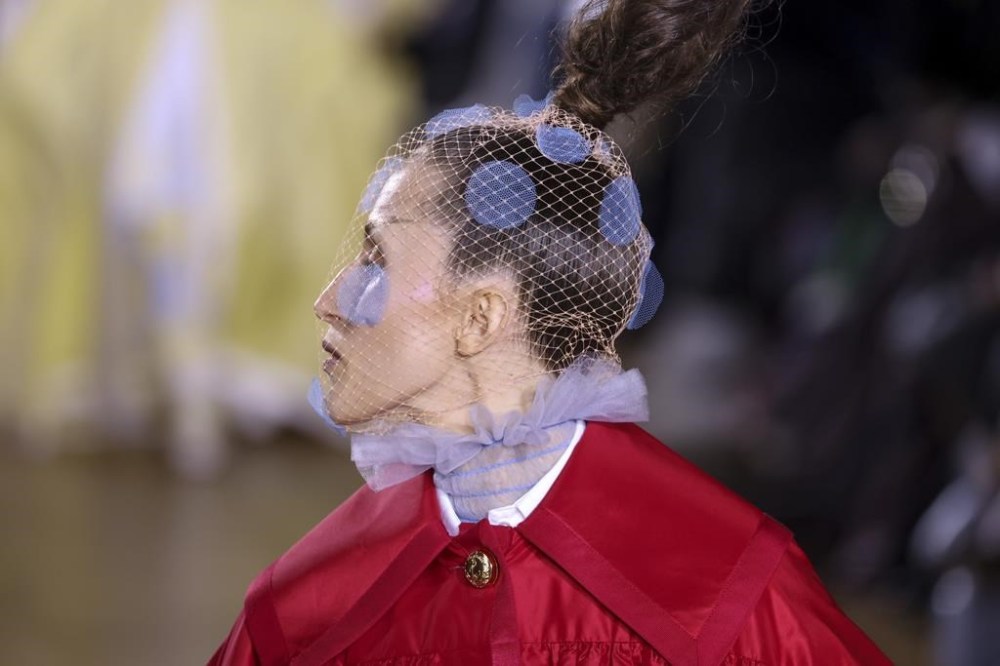 Collars were blown up in Peter Pan styles, leading the eye down to tiered and truncated silhouettes, voluminous Juliette sleeves, generous whooshes and ripples of fabric — and even polka dots.