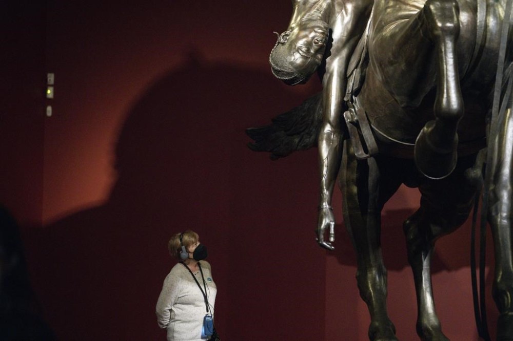 Just take the last few months. In March, he was in San Francisco for the U.S premiere of “Kehinde Wiley: An Archaeology of Silence” at the de Young Museum, a powerful display of massive paintings and sculptures exploring anti-Black violence in a global context. The museum has set up dedicated spaces for attendees who need a breather from the intensity of the show, which runs until Oct. 15.
