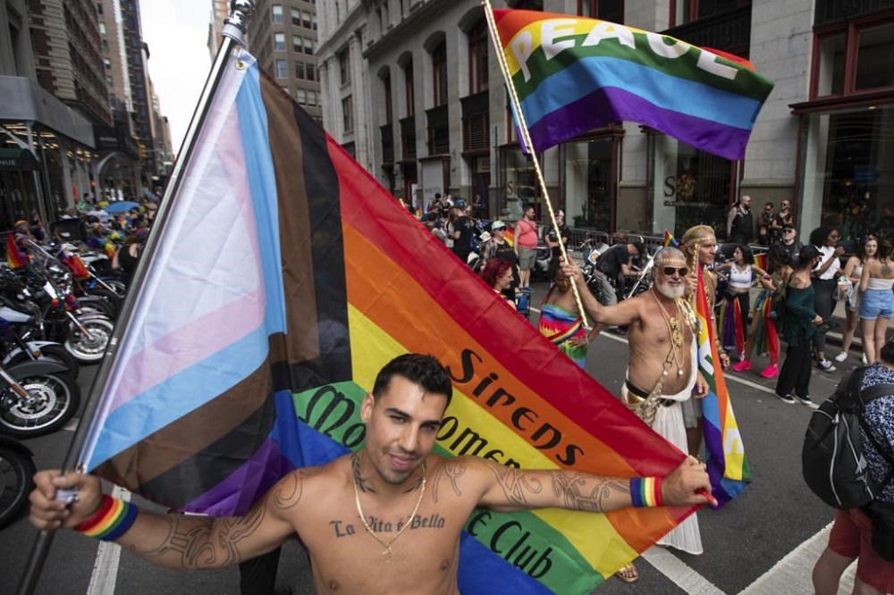 New York’s boisterous throng strolled and danced down Fifth Avenue to Greenwich Village, cheering and waving rainbow flags to commemorate the 1969 Stonewall uprising, where a police raid on a gay bar triggered days of protests and launched the modern movement for LGBTQ+ rights.