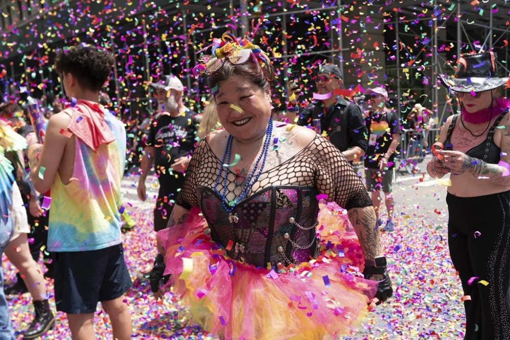 NEW YORK (AP) — Thousands of effusive marchers danced to club music in New York City streets Sunday as bubbles and confetti rained down, and fellow revelers from Toronto to San Francisco cheered through Pride Month’s grand crescendo.