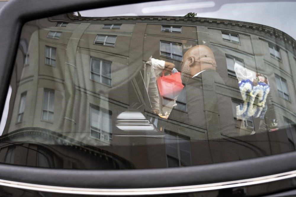 The casket of O'Shae Sibley is placed in a hearse following a celebration of life for Sibley on Tuesday, Aug. 8, 2023, at The Met Philadelphia, in Philadelphia. Friends and family members gathered Tuesday to remember Sibley, who was fatally stabbed after he confronted teenagers who taunted his group of gay, Black friends as they danced at a New York City gas station. (AP Photo/Joe Lamberti)