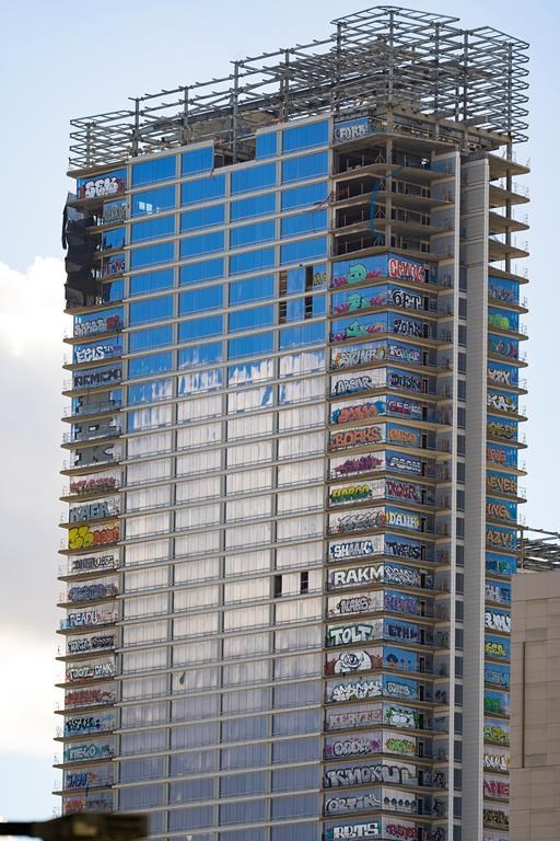 LOS ANGELES (AP) — Graffiti has risen to high art in downtown Los Angeles: Taggers have covered at least 27 stories of an unfinished high-rise development.