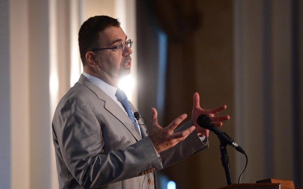 Economist Daron Acemoglu discusses the effects robotics and AI have in industrial nations during an event hosted by The Canadian Institute for Advanced Research in Ottawa on Tuesday, June 13, 2017. The book "Power and Progress: Our 1000-year struggle over technology and prosperity" by Acemoglu and Simon Johnson, two professors at MIT is shortlisted for the 2023 Lionel Gelber Prize. THE CANADIAN PRESS/Sean Kilpatrick
