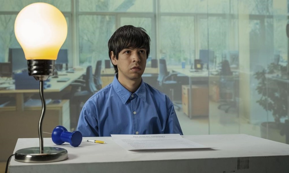 Torres displays a Kafkaesque bent as he illustrates the byzantine hurdles of red tape that immigrants face, with Alejandro negotiating a fantasy office maze, like a human rat opening vents to climb into sterile offices. In one scene, an immigrant who is told she must leave the country suddenly disappears — poof!