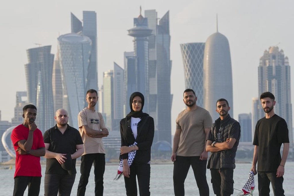 DOHA, Qatar (AP) — They stroll Doha’s waterfront promenade and sing softly about children who are now “birds in heaven,” flying free of the pain of the war in Gaza.