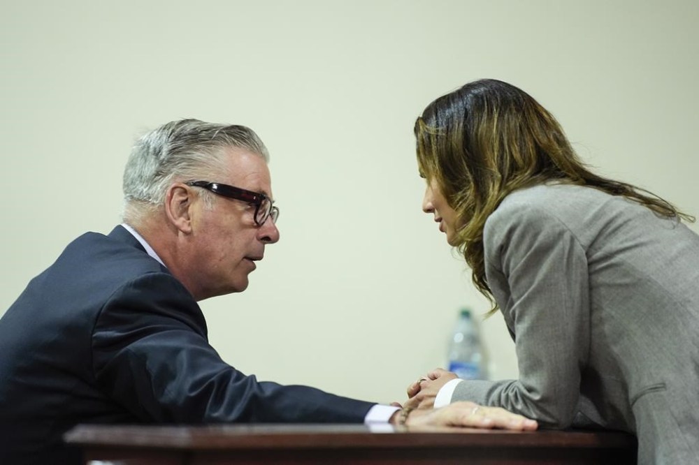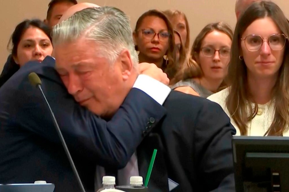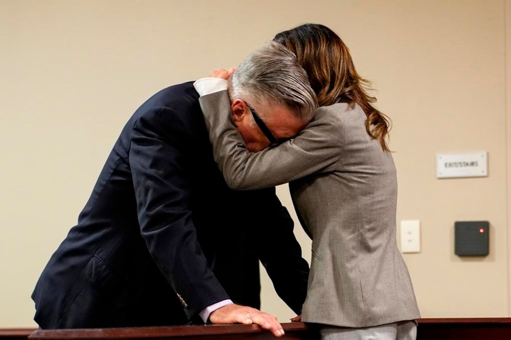Baldwin cried, hugged his two attorneys, gestured to the front of the court, then turned to hug his crying wife, Hilaria, the mother of seven of his eight children, holding the embrace for 12 seconds. He climbed into an SUV outside the Santa Fe County courthouse without speaking to the media.