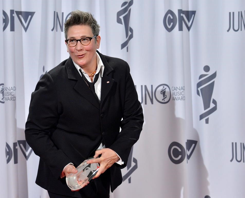 k.d. lang poses with the Juno after being inducted to the Canadian Music Hall of Fame during the 2013 Juno Gala, Dinner and Awards in Regina on Sunday, April 21, 2013. THE CANADIAN PRESS/Liam Richards