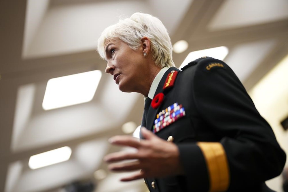 Chief of Defence Staff Jennie Carignan arrives to appear as a witness at a House of Commons standing committee on Veterans Affairs in Ottawa on Thursday, Oct. 31, 2024. THE CANADIAN PRESS/Sean Kilpatrick