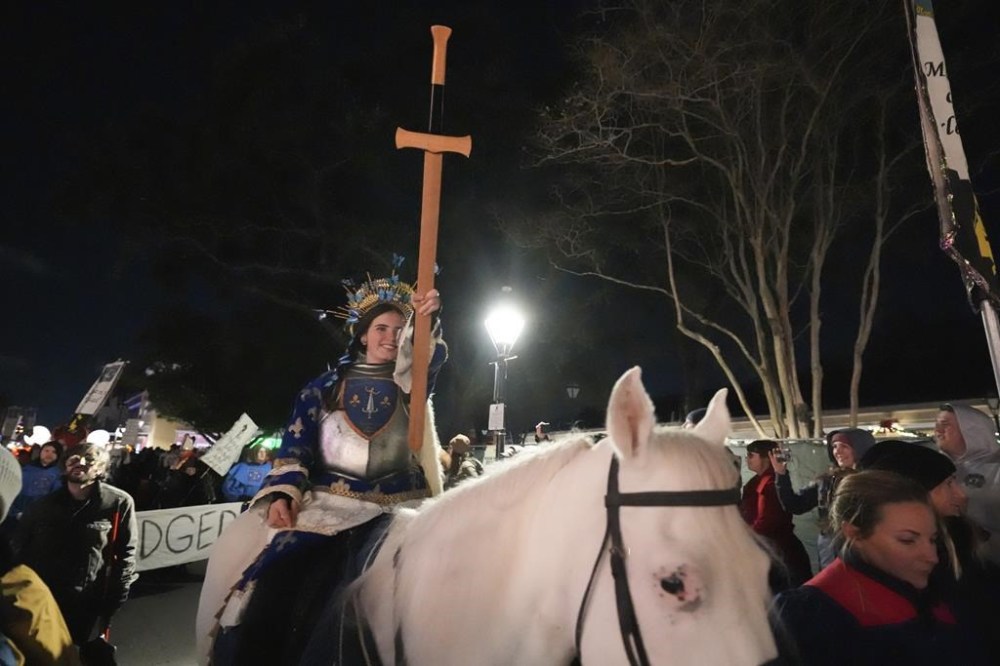 Spectators expressed gratitude for the knights, monks, angels and others who had donned their elaborate costumes in near-freezing weather: “Thank y’all!” “Y’all look so great!” “Gorgeous!” Strangers smiled at each other, friends reconnected and hugged along the route and the warmth of the moment seemed to hold the city together.