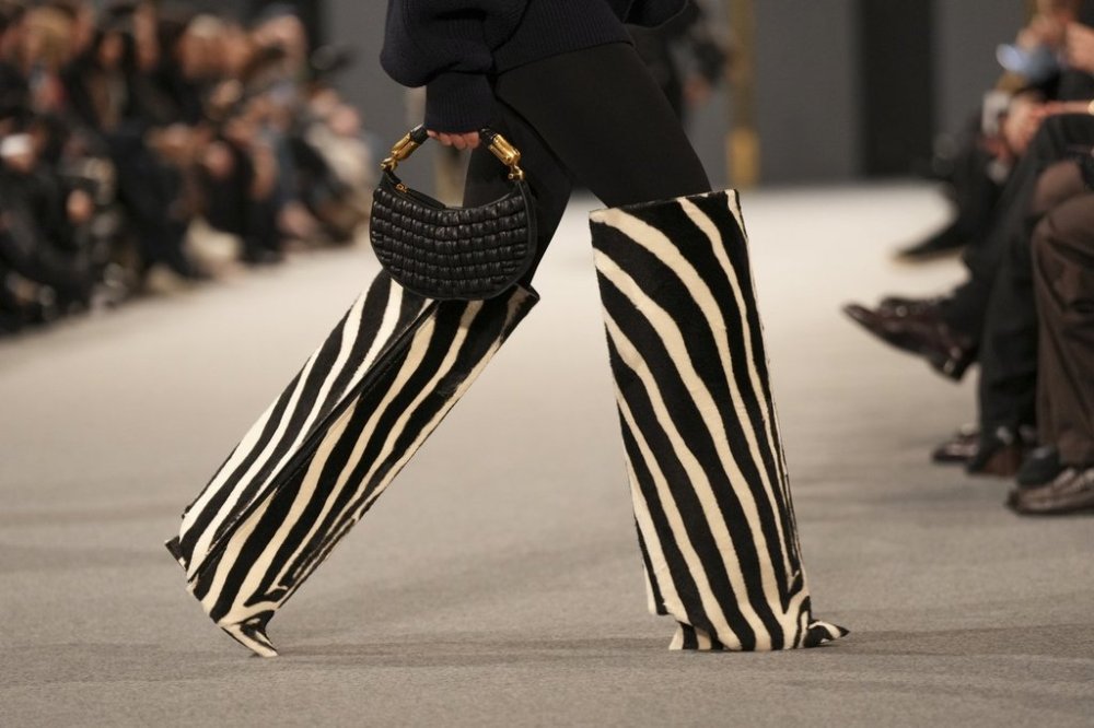 That softness found its counterbalance in statement hardware and a flash of animalistic energy. Chunky bracelets, talon earrings and that bold, graphic zebra motif, paired with oversized coats and slouchy boots reminded us this was still Balmain.