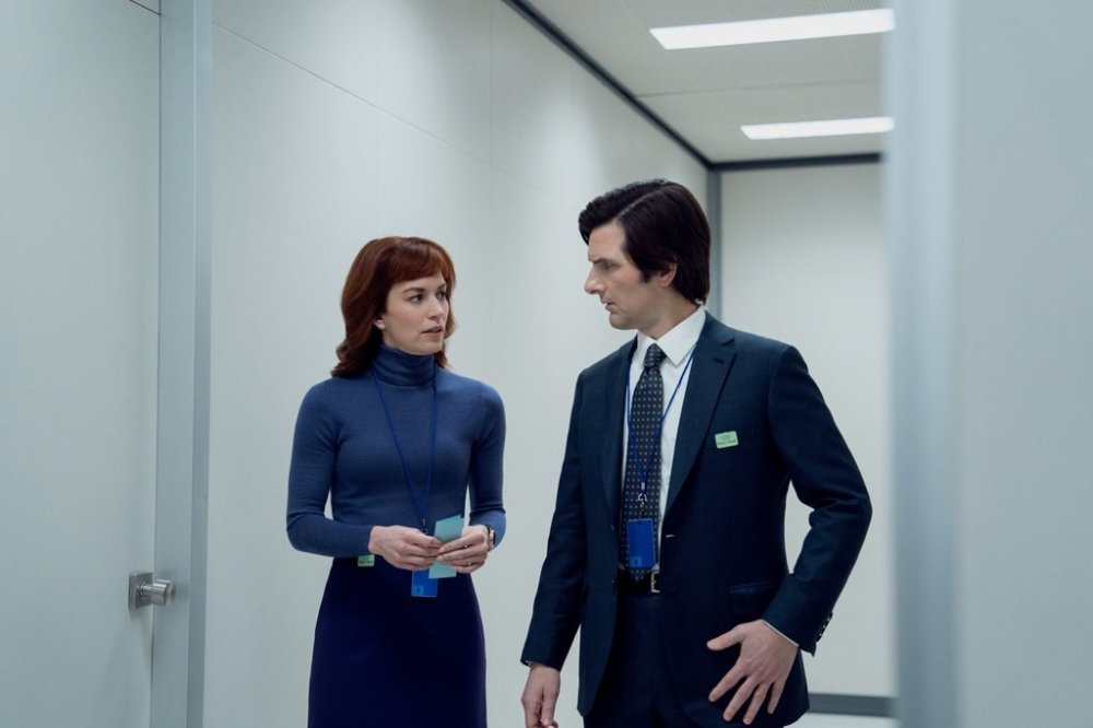 Britt Lower, left, and Adam Scott are shown in an episode from season two of "Severance" in this undated handout photo. THE CANADIAN PRESS/HO - Apple TV