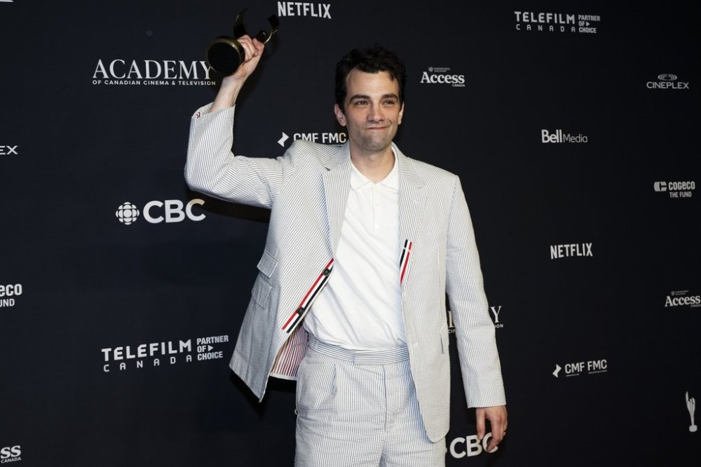 Actor Jay Baruchel of "BlackBerry" poses with his award for Performer in a Leading Role, Comedy, at the 2024 Canadian Screen Awards Gala in Toronto, on Friday May 31, 2024. THE CANADIAN PRESS/Arlyn McAdorey