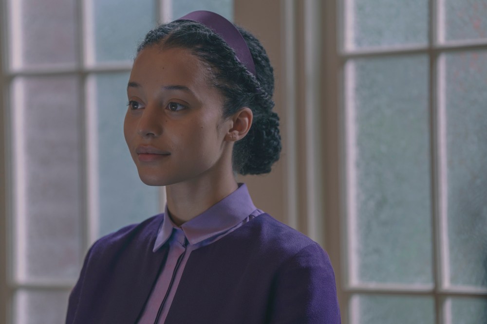 Infiniti’s character Agnes narrates the series as one of the “Plum Girls.” This means she is a woman who has yet to reach child-bearing age but hopes that she will be joining the “Greens” — women who are to be married to powerful Gilead commanders.