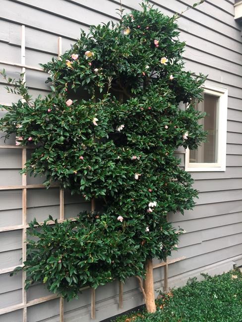 Ornamental plants with long, flexible branching also make good espalier candidates. Think camellias, holly, magnolia, bougainvillea, climbing roses and a host of others.