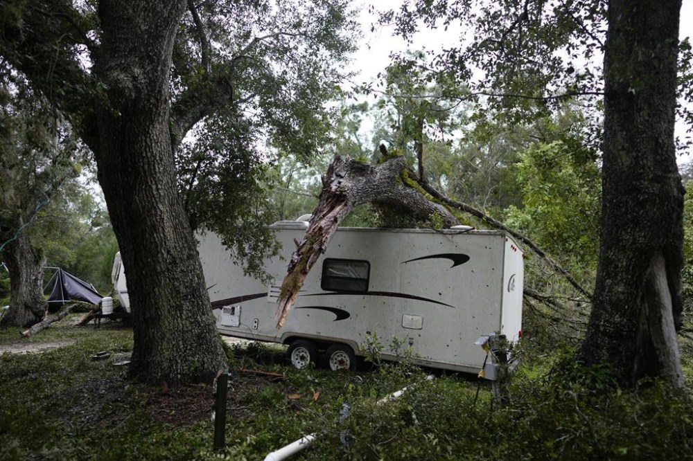 On the island of Cedar Key, downed trees and debris blocked roads, and propane tanks exploded.