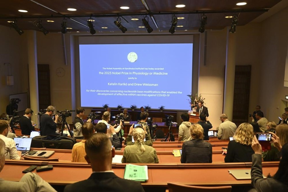STOCKHOLM (AP) — Two scientists won the Nobel Prize in medicine on Monday for discoveries that enabled the creation of mRNA vaccines against COVID-19 that were critical in slowing the pandemic — technology that’s also being studied to fight cancer and other diseases.
