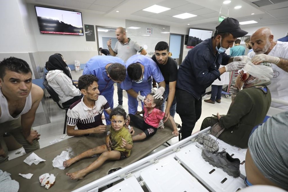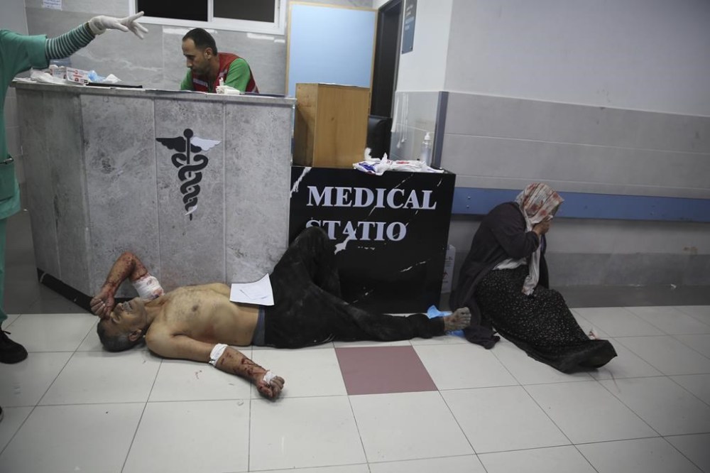 Palestinians wounded in Israeli strikes are brought to Shifa Hospital in Gaza City on Wednesday, Oct. 11, 2023. (AP Photo/Ali Mahmoud)