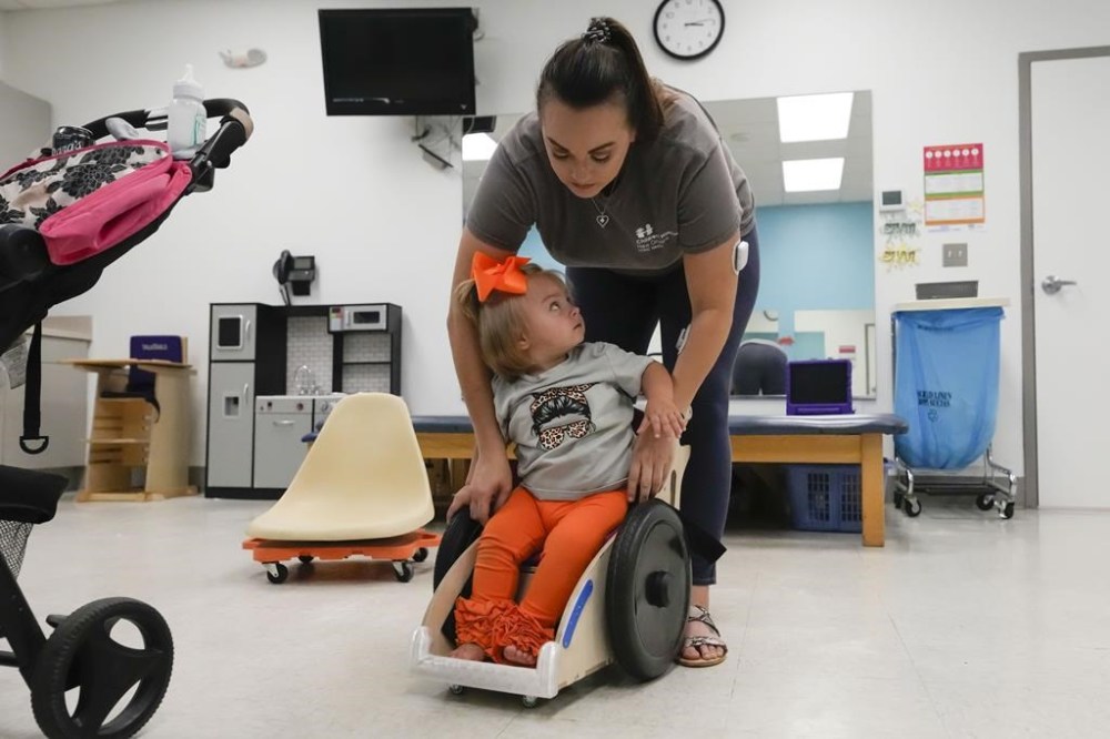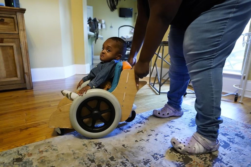 NEW ORLEANS (AP) — At 19 months old, Elijah Jack, born with no femur bone in one leg and a short femur in the other, is unable to walk on his own like most toddlers his age. Another 19-month-old, Freya Baudoin, born prematurely at 28 weeks and delayed in her mobility, has finally taken her first step.