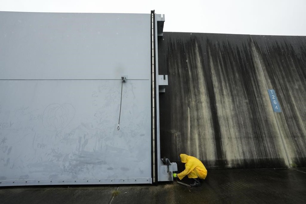 Workers from the Southeast Louisiana Flood Protection Authority-West close floodgates along the Harvey Canal, just outside the New Orleans city limits, in anticipation of Tropical Storm Francine, in Harvey, La., Tuesday, Sept. 10, 2024. (AP Photo/Gerald Herbert)