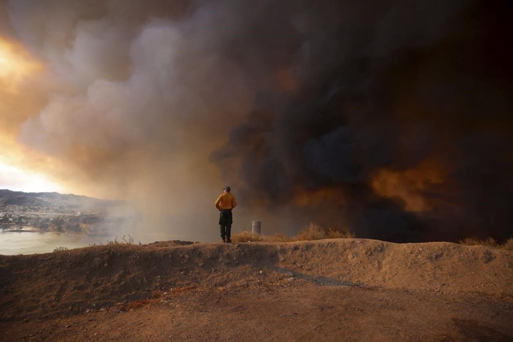Marrone said that because winds were not as strong as they were two weeks ago, aircraft crews were able to drop fire retardant on the south side of the fire, where the flames were moving, he said. More than 4,000 firefighters were assigned to the fire, he said.