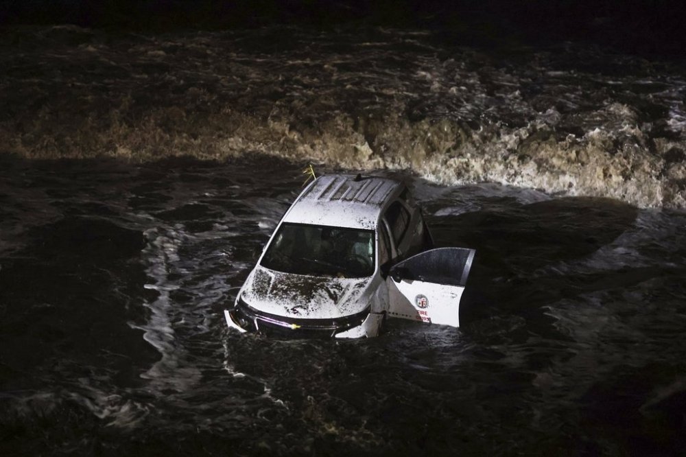 LOS ANGELES (AP) — A swift debris flow swept a Los Angeles Fire Department vehicle off the Pacific Coast Highway and into the ocean as heavy rain fell across Southern California on Thursday, creating deluges of water and mud on roads at the bottom of hillsides left barren by recent wildfires.