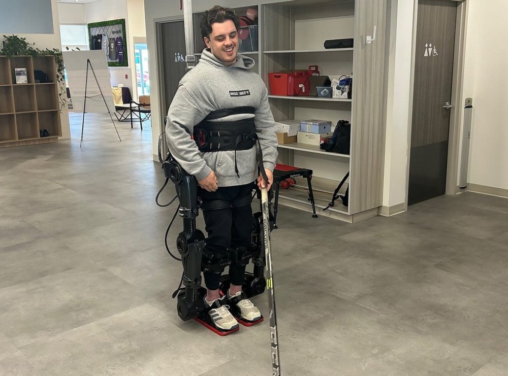 It also helped him handle a hockey stick and throw a football to staff at the rehab centre.