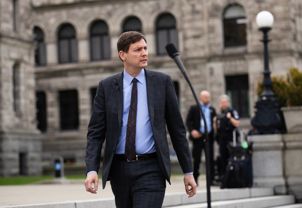 Premier David Eby arrives to a press conference following the throne speech while the province declares today as a day of mourning at the legislature in Victoria, B.C., on Thursday, Feb. 12, 2026. THE CANADIAN PRESS/Chad Hipolito