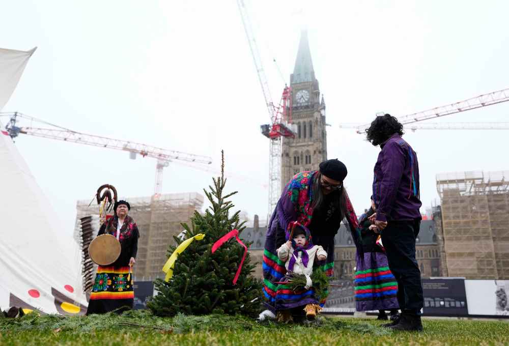 OTTAWA – Six-month-old Annora Crowe held her parents’ hands as she emerged from a teepee under the shadow of the Peace Tower in Ottawa on Wednesday and took her first steps.