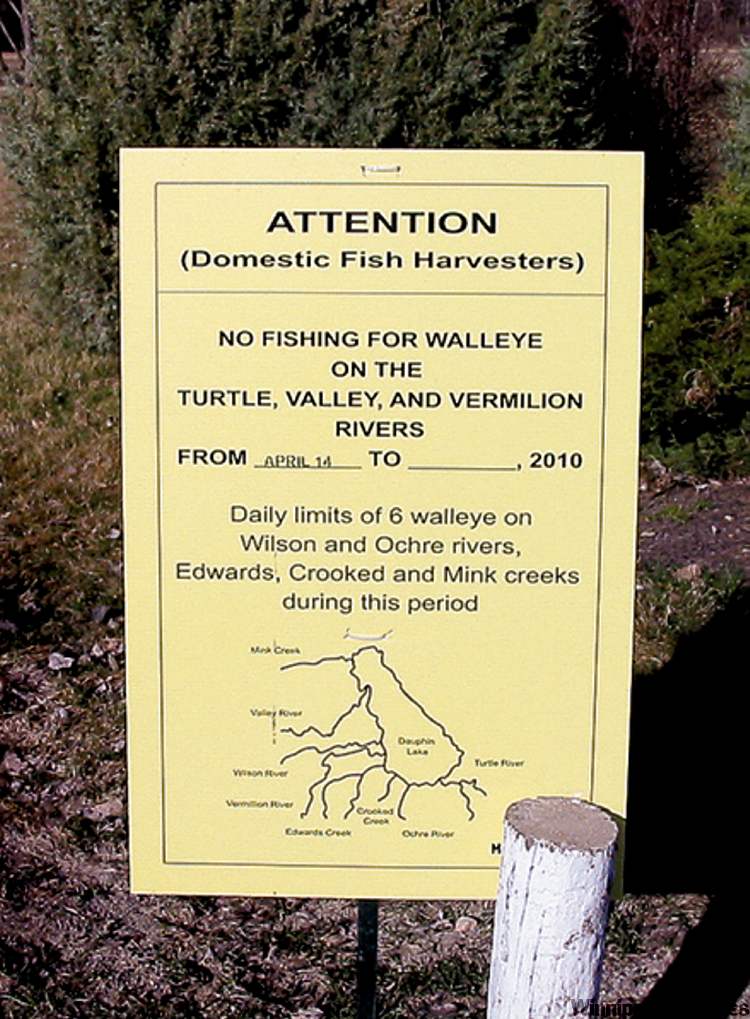 Manitoba Conservation has banned all fishing on the Turtle, Valley and Vermillion rivers here since April 14, until the completion of spawning. In its place, and to accommodate the aboriginal treaty right to fish for sustenance, Manitoba Conservation has been handing out six frozen pickerel to every aboriginal person who shows up at the rivers.